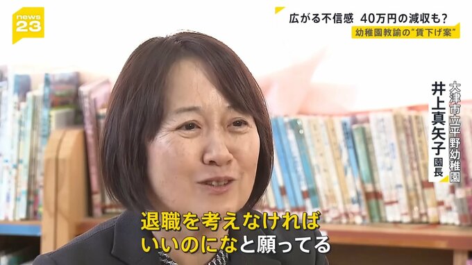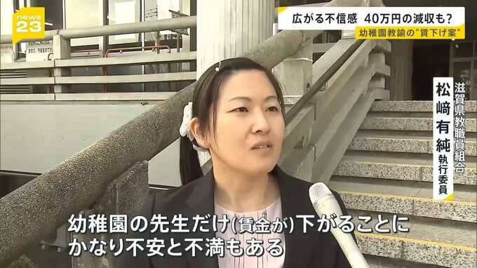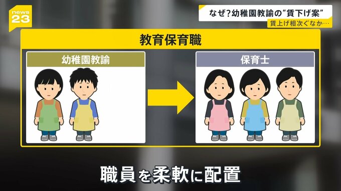 「幼稚園の先生だけ(賃金が)下がることにかなり不安と不満もある。強引な形で進めていくことに憤りがある」