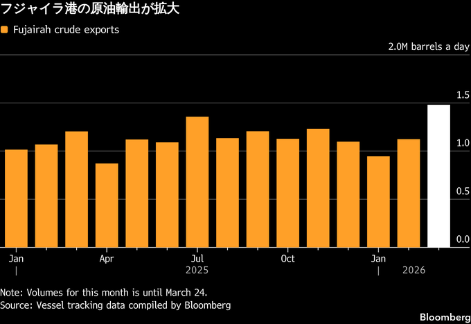 原題:UAE Port Ramps Up Hormuz-Dodging Oil Flows After Iranian Strikes(抜粋)