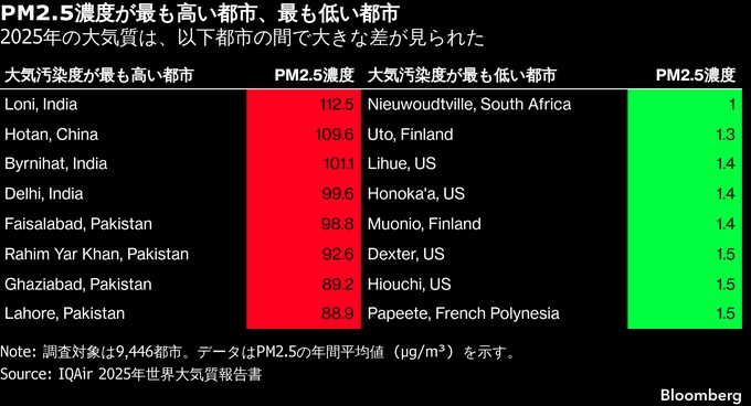 原題:Global Air Quality Worsened in 2025 and Poses Threat to Growth(抜粋)