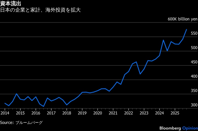 企業や家計が海外投資を拡大するほど、円には下押し圧力がかかる。例えば、米国のプライベートクレジット運用会社は日本の個人投資家から資金を取り込み、融資関連の損失や償還制限に関するネガティブなニュースが続く中でも、日本勢を忍耐強い投資家と評価している。
