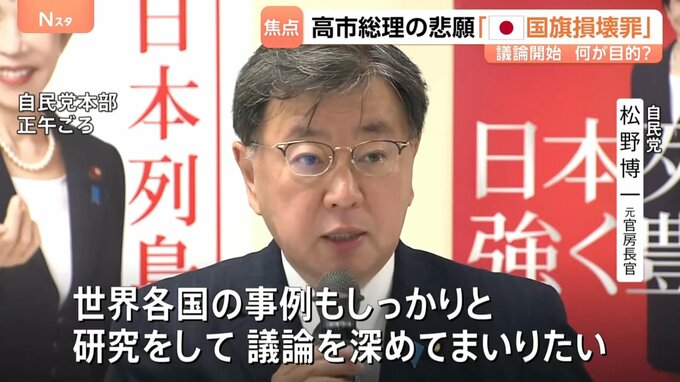 自民党では31日、日本の国旗を傷つけたり汚す行為を処罰する法律の導入に向けた議論が始まりました。高市総理の悲願とも言われる法律ですが、どのような目的で導入するのでしょうか。