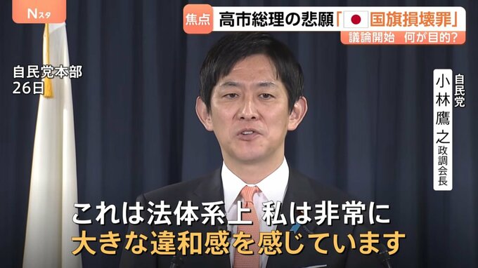 「外国の国旗を傷つけた場合に処罰の対象となるのは、“外交関係への悪影響を避けるため”ということが目的とされています。野党からは日本の国旗にもなぜ制定する必要があるのかという指摘があがっています」