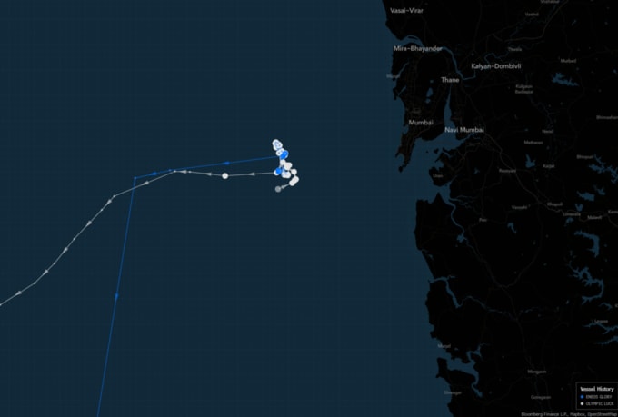 ブルームバーグがまとめた船舶追跡データによると、VLCCの「ENEOS GLORY」は先週後半、別のVLCC「Olympic Luck」から約180万バレルの積荷を移し替えた。「Olympic Luck」は同積み替えの約1週間前に、オマーン湾のフジャイラで、マーバン油田産の原油を積み込んでいた。