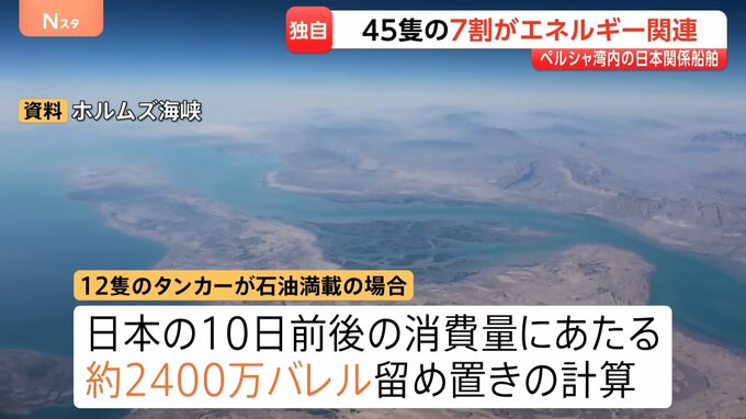 原油の輸入に詳しい関係者は、「12隻のタンカーは原油を満載している可能性が高い」としていて、日本の10日前後の消費量にあたるおよそ2400万バレルが留め置かれている計算です。