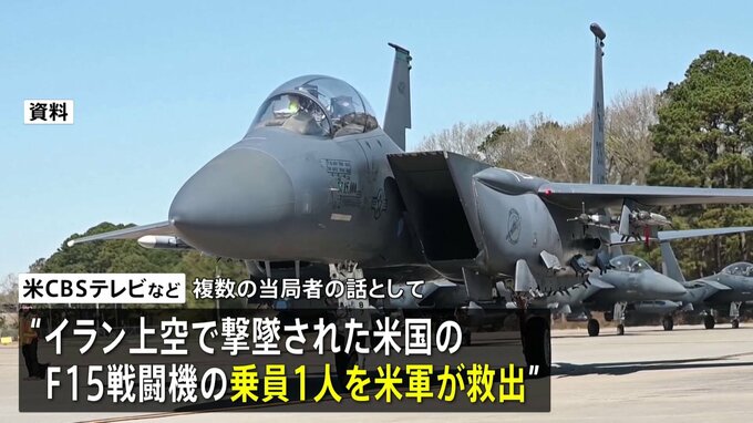 イランが撃墜したと発表したアメリカ軍の戦闘機について、アメリカメディアは乗員1人が軍によって救出されたと報じました。CBSテレビなどは3日、イラン上空で撃墜されたアメリカのF15戦闘機の乗員1人をアメリカ軍…