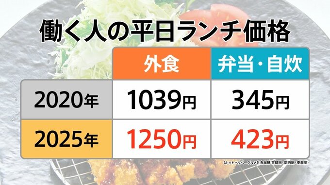 2020年と比較しても、5年間で物価が上がり、ランチ価格も約2割上がっています。