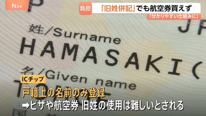 ICチップには戸籍上の名前しか登録できず、旧姓が書かれていても、ビザや航空券を取る際に使うのは難しいと言われています。