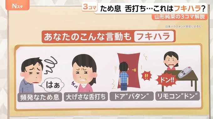 日本ハラスメント協会によると、こういったものが繰り返されると、不機嫌ハラスメントに当たるということです。さらに、こんな言動もフキハラに該当します。