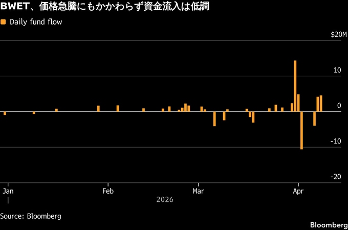 原題:A 1,300% Rally Turns a Tiny Shipping ETF Into an Iran War Gauge(抜粋)