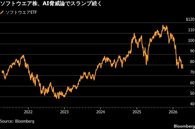 (ブルームバーグ):9日の米国株式市場で、ソフトウエア銘柄への売りが再び膨らんだ。人工知能(AI)サービスが事業の存続を脅かすとの懸念から、同セクターの試練が続いている。