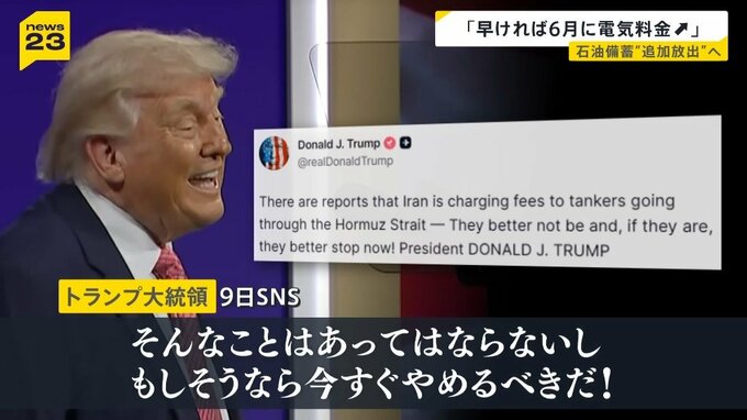ホルムズ海峡の全面的な開放を改めて求めたトランプ大統領。ホルムズ海峡の通航を巡り「イランは極めて不十分な対応をとっている」「我々が交わした合意はそのようなものではない」と投稿。イラン側の対応を批判しました。