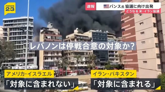 今回の停戦合意を巡っては、アメリカとイスラエルは「レバノンは対象に含まれない」と主張する一方で、イランと仲介国のパキスタンは「対象に含まれる」としています。