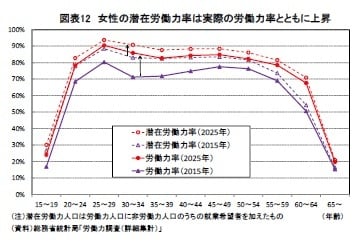 ただし、2025年の潜在労働力人口を男女別にみると、男性が70万人、女性が142万人となっており、女性は引き続き労働力人口の拡大余地が残っている。
