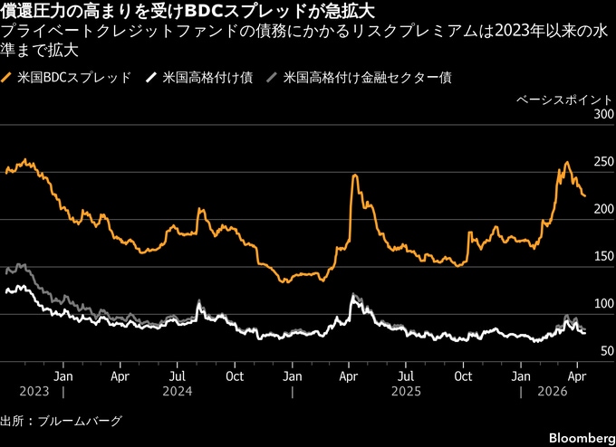 提出資料によると、OBDCの債券は同程度の年限の米国債に対して約2.7ポイントのスプレッドで発行された。ブルームバーグが集計したデータでは、米国のBDCスプレッドはここ数週間で拡大し、1月の1.7ポイントから約2.25ポイントに拡大している。これに対し、米国の高格付け債のスプレッドは約0.8ポイントにとどまる。