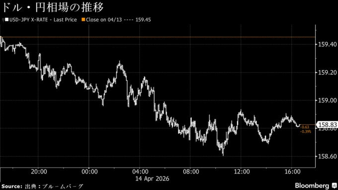 (ブルームバーグ):14日の米金融市場では、停戦合意に向けた米国・イラン再協議への期待から原油価格が大きく下げ、株式は続伸した。原油価格の下落でインフレ懸念が和らぎ、国債も値上がり。半面、ドルは再び売られ、対円では1ドル=158円台後半に下落した。