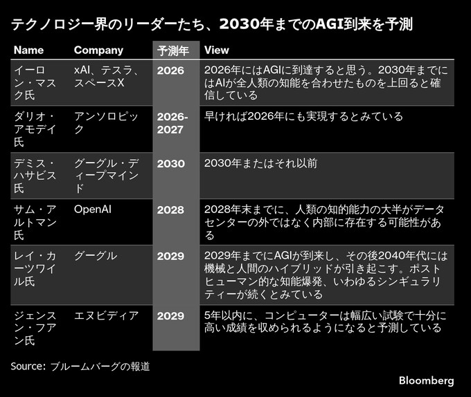 自身の投資判断の高度化や地政学的事象の予測、ニュースやスポーツの結果に賭ける予測市場サイトのポリマーケットでの成果向上にも活用できるかどうかについても試しているという。常識や自己修正能力を備えるAGIの実現はなお数年先と懐疑的にみる向きもあるが、数年前まで大勢だった「数十年はかかる」との見方は後退している。
