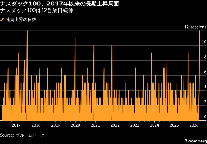 RBCブルーベイ・アセット・マネジメントの市場戦略責任者、マイケル・ベル氏は「投資家はあらゆる押し目で買うという習慣が身についてしまっている」と指摘。「見通しはホルムズ海峡が近く再開するのか、しないのかのどちらかだ。株式市場はすでに再開を織り込んでいるため、上昇余地は限定的かもしれない」と述べた。