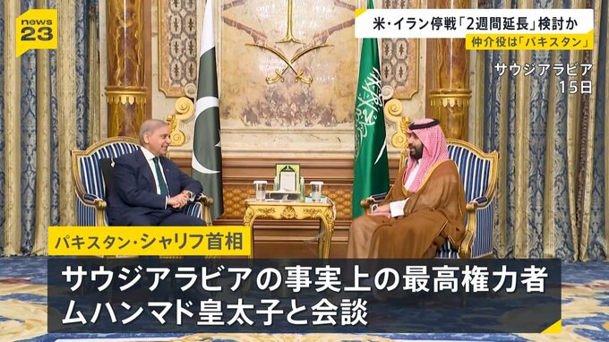 さらに、パキスタンのシャリフ首相は、サウジアラビアの事実上の最高権力者=ムハンマド皇太子と会談。このあとはカタールやトルコを訪問し、戦闘終結に向けたアメリカとイランの協議について、調整を図るものとみられます。