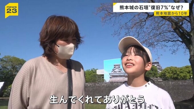 16日、街のシンボルである熊本城は、多くの観光客で賑っていました。 家族で訪れていた女の子。本震の直前に生まれ、今日が10歳の誕生日だといいます。
