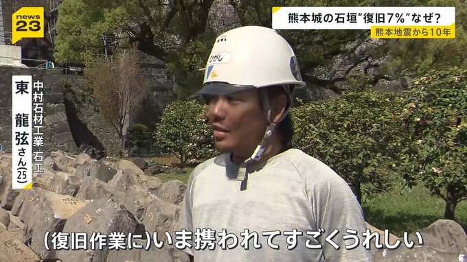 復旧の最前線にいるのは、地元・熊本市出身の男性。2024年、施工業者に入り、作業に携わっています。