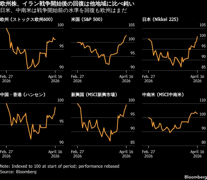 4月16日の欧州マーケット概観(表はロンドン午後6時現在)