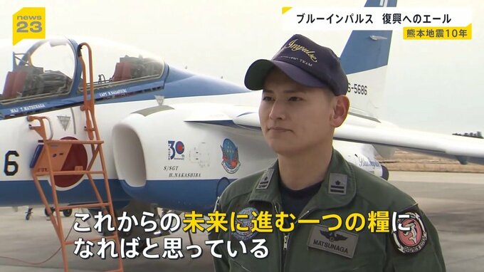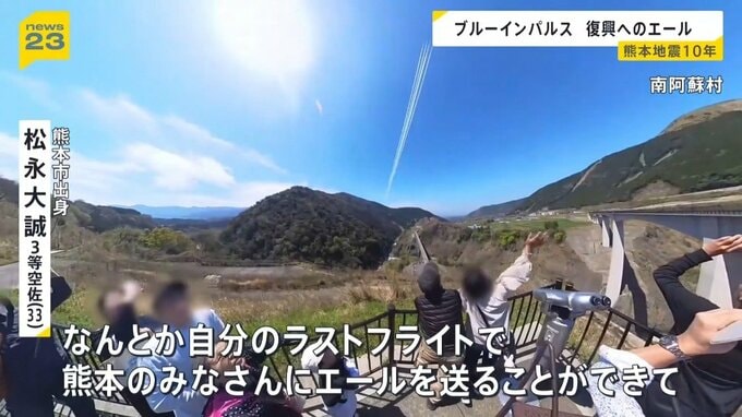 「いつか熊本のために恩返しをしたいという思いを胸にブルーインパルスに入って、なんとか自分のラストフライトで熊本のみなさんにエールを送ることができて、ありがたいなと思いながら飛行しました」