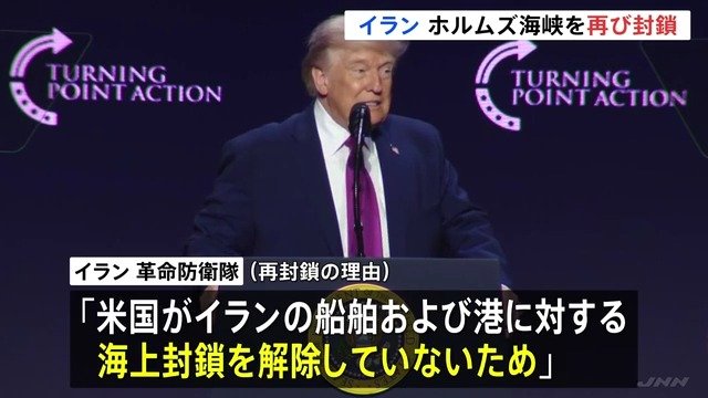 革命防衛隊は再封鎖の理由について「アメリカがイランの船舶および港に対する海上封鎖を解除していないため」としています。さらに、声明では「ホルムズ海峡への接近は敵への協力とみなされ、違反した船舶は標的となる」と警告しました。