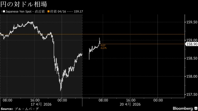 (ブルームバーグ):20日朝の外国為替市場の円相場は対ドルで159円近辺で推移。イランがホルムズ海峡を再び封鎖したことを受けて、中東和平へ向けた楽観的な見方が後退し、ドルを買い戻す動きが出ている。債券は上昇(利回りは低下)が見込まれるが、原油高止まりやリスク許容度の低下により上値の重い展開になりそうだ。