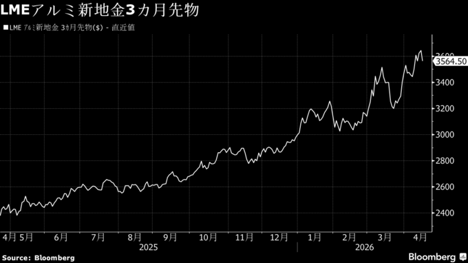 ホルムズ海峡封鎖などによるサプライチェーンの寸断に加え、主要な精錬所の操業停止も伝えられている。こうした状況を背景にアルミ価格は上昇基調にある。