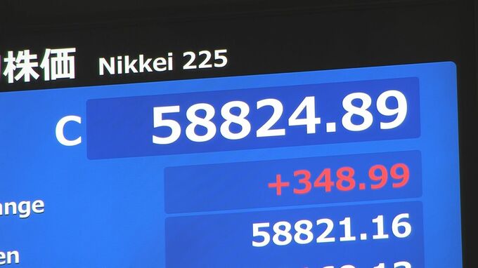 週明けの平均株価は値上がりし、終値は5万8824円となりました。ただ、不透明な中東情勢が重しとなり、注目されていた大台の6万円突破は持ち越しです。週明けの東京株式市場で日経平均株価は一時、700円近く値上が…