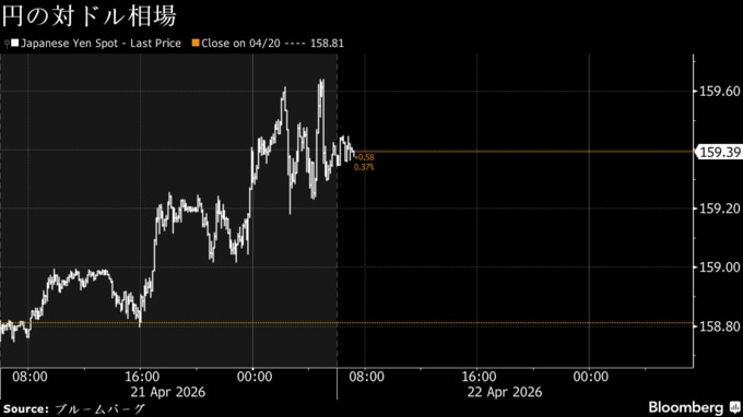 (ブルームバーグ):22日朝の外国為替市場で円は対ドルで159円台前半で推移。米国とイランの新たな協議計画が頓挫したことや、米金利上昇を背景にしたドル買いは、トランプ米大統領の停戦延長表明で一服した。ただ、中東情勢の不透明感は残り、ドルは買われやすい。債券は下落の見通し。
