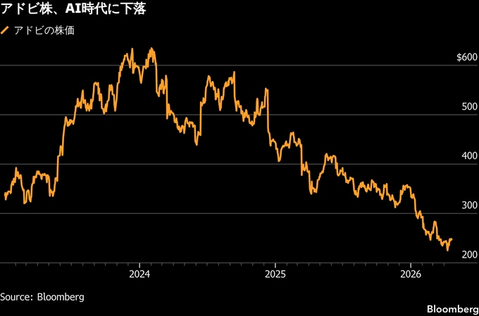 AIがビジネスモデルを変える可能性があるとの懸念から、一部のソフトウエア企業で投資家の評価が低下しており、アドビもその一角にある。生成AIの普及で、これまでクリエイターの標準とされてきた、同社の高価な製品を使わなくとも、画像や動画の制作が容易になった。グーグルの動画作成ツール「Veo 3」など、人気の高い、多くの新しいAIツールが競合企業によって開発されている。