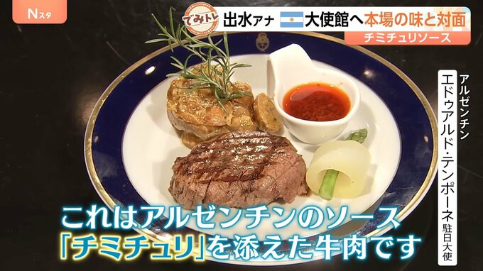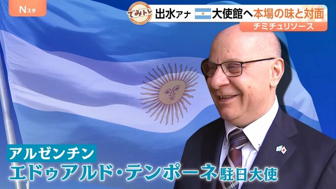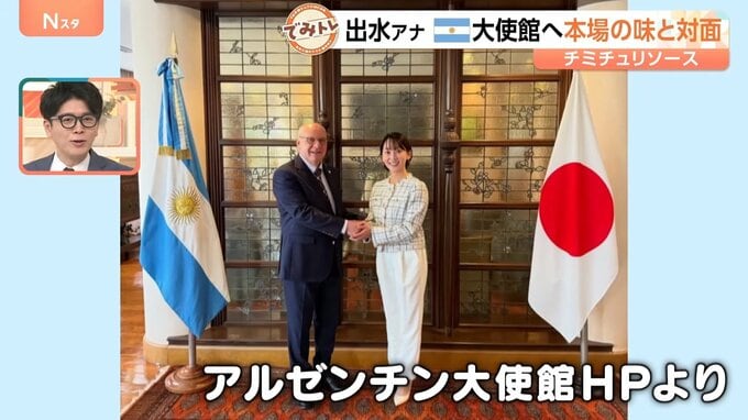 出水麻衣アナが向かったのは、 アルゼンチンではなく、東京・港区にある大使館。テンポーネ駐日大使が出迎えてくれました。