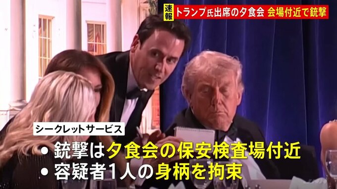夕食会にはメラニア夫人のほか、バンス副大統領や複数の閣僚も出席していましたが、これまでのところけが人などの情報はありません。