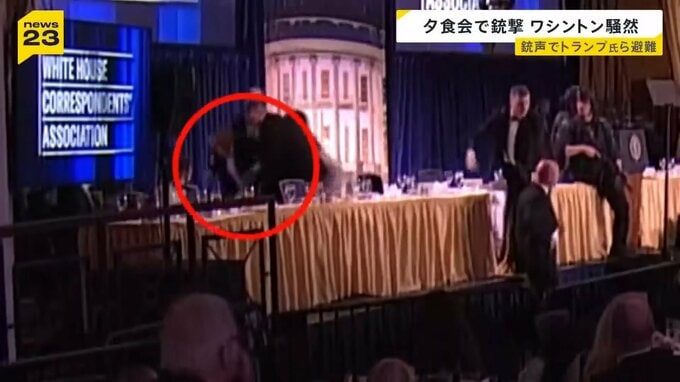 25日、トランプ大統領が出席する夕食会で起きた銃撃事件。