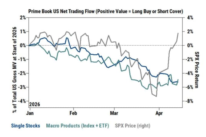 S&P500種株価指数が先週、急速に持ち直し過去最高値を更新する中、ヘッジファンドは株式のロングとショート双方のポジションを昨年9月以来の最大規模で縮小した。ビンセント・リン氏率いる同行チームの分析が示した。