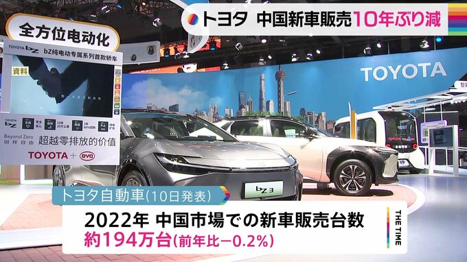 トヨタ自動車の去年の中国市場での新車販売台数が10年ぶりに前の年と比べ減少しました。トヨタ自動車は10日、去年1年間の中国市場での新車販売台数が前年比マイナス0.2%のおよそ194万台だったと発表しました。前年…
