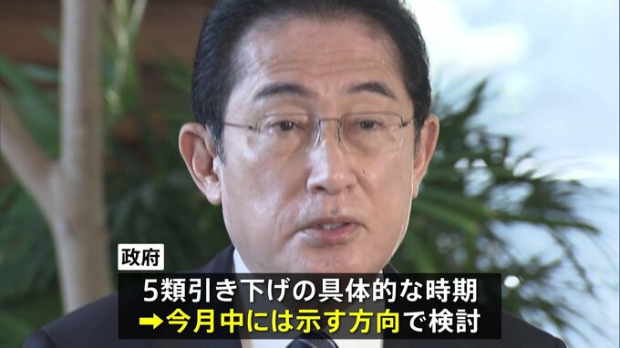 新型コロナを「5類」に引き下げる時期を今月中には示す方向で政府が検討を進めていることが分かりました。岸田総理は、きのう、新型コロナの感染症法上の位置づけを季節性インフルエンザなどと同じ「5類」に引き下…