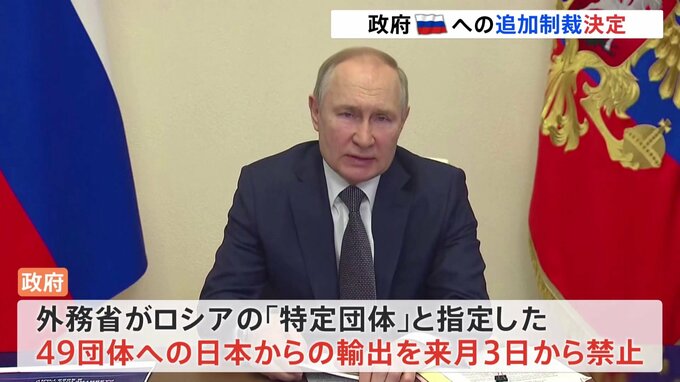 政府はウクライナ侵攻を続けるロシアへの追加制裁として、軍事能力を強化する化学物質の日本からの輸出を禁止することなどを決めました。政府はけさの閣議で、ウクライナ侵攻に関わっている36個人・3団体に対し、…