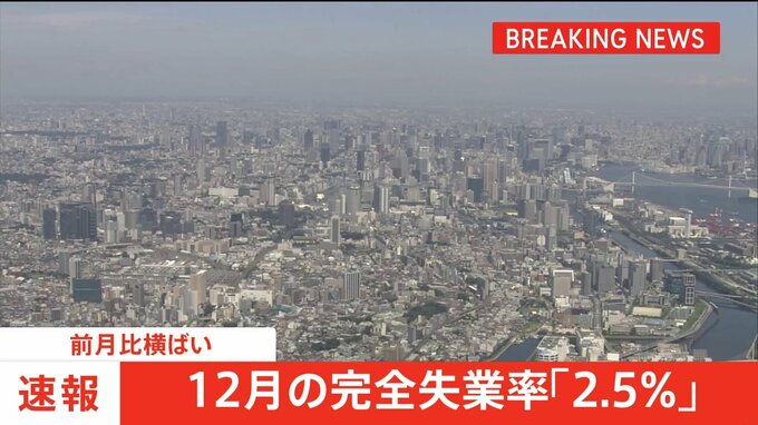 総務省がきょう発表した労働力調査によりますと、全国の12月の完全失業率は前の月から変わらず2.5%でした。2022年の平均の完全失業率は前の年と比べて0.2ポイント低下して2.6%となり、4年ぶりに改善しました。