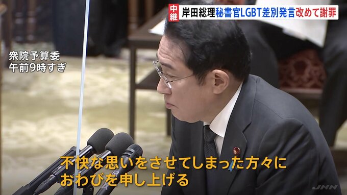 国会では衆議院・予算委員会が開かれ、岸田総理は総理秘書官の性的少数者に対する差別発言について、改めて謝罪しました。国会記者会館から中継です。岸田総理は多様性を尊重し、包摂的な社会を実現していく政府方…