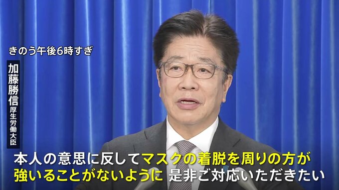 あと1か月あまりでマスクの扱いが変わります。政府は来月13日からマスク着用は「個人の判断に委ねる」ことを決めました。加藤勝信 厚生労働大臣「本人の意思に反してマスクの着脱を周りの方が強いることがないよ…