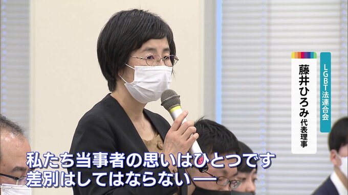 LGBT=性的少数者の理解増進法案の早期成立を目指す超党派の議員連盟の総会に当事者団体の代表らが出席し、一日も早い差別の禁止を訴えました。LGBT法連合会 藤井ひろみ 代表理事「私たち当事者の思いはひとつで…