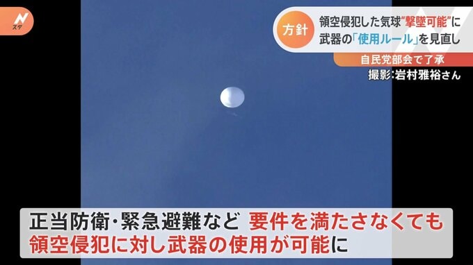 中国の無人偵察用とみられる気球が日本の領空でも確認された問題。政府は気球などでも領空侵犯をした場合は、撃墜出来るよう自衛隊の武器使用のルールを見直す方針を固めました。世界各国の領空で確認されている中…