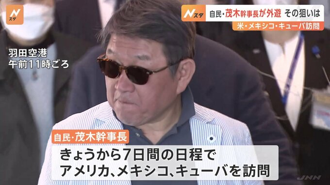 自民党の茂木幹事長は、きょうアメリカ・ワシントンなどを訪問するため羽田空港を出発しました。茂木幹事長の外遊の狙いについて、政治部・長田記者の報告です。茂木幹事長はきょうから7日間の日程でアメリカ、メ…