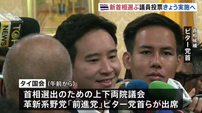 タイで13日、新たな首相を選ぶ上下両院の議員投票が実施されます。5月の総選挙で第1党となった革新系野党の候補が過半数を獲得できるか注目です。タイの国会では午前から、首相選出のための上下両院議会が開かれ、…