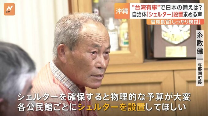 台湾有事などが起きた時に備え、沖縄の自治体からは「シェルター」の建設支援を求める声が相次いでいます。沖縄・石垣島にある市役所の地下。記者「開けてみますと、防災の備蓄倉庫や備品、書庫としての活用をして…