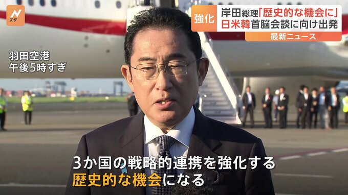 岸田総理はアメリカで行われる日米韓首脳会談に向け、羽田空港を出発しました。日韓関係の改善に伴い、3か国の連携強化を図ります。岸田総理「3か国の戦略的連携を強化する歴史的な機会になる」今回の首脳会合は、…