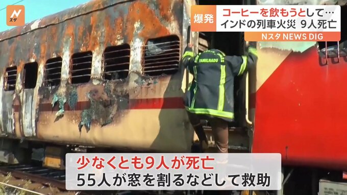 インド南部で駅に停まっていた列車の車両が燃え、少なくとも9人が死亡した火災。夜明けのコーヒーがきっかけとみられています。激しい炎に包まれる車両。インド南部タミルナド州の駅の停車場で26日、列車の車両か…