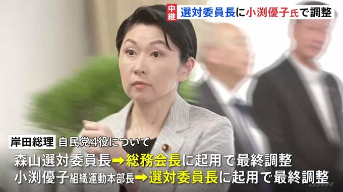 あすおこなわれる内閣改造・自民党役員人事で岸田総理は、小渕組織運動本部長を選挙対策委員長に起用する方向で調整を進めるなど、人選の最終調整に入りました。岸田総理は先ほど開かれた総務会で人事の一任を取り…